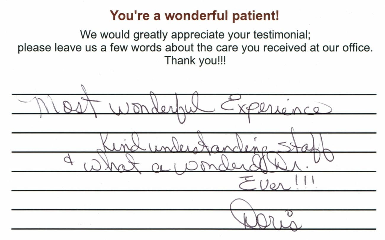 Most wonderful experience. Kind, understanding staff & what a wonderful Dr.